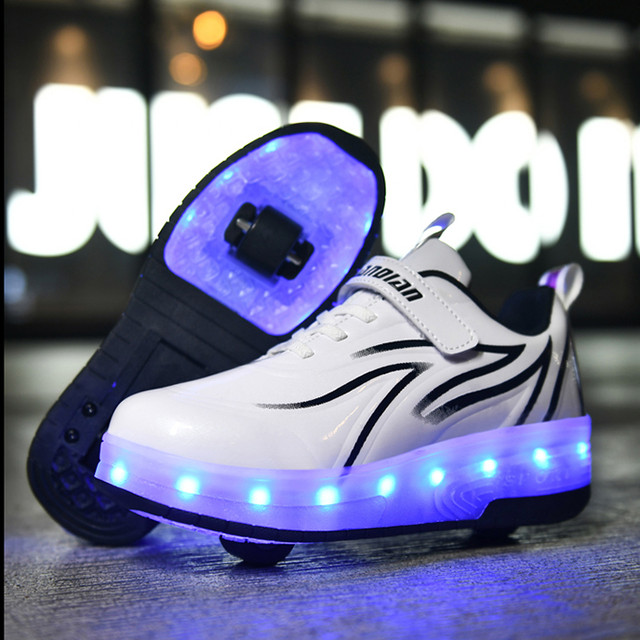 Роликові кросівки, що світяться, в стилі Heelys. 2 ролики, USB заряджання. Новинка. білі (N-00744)